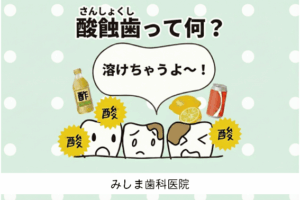 酸蝕歯(さんしょくし)は、飲食物に含まれる酸や、胃酸が口の中に上がることなどの影響で、歯の表面(エナメル質)が少しずつ溶けて弱くなる状態を指します